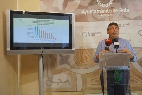 Daniel Manrique de Lara, teniente de alcalde y delegado de Hacienda del Ayuntamiento de Rota, ha comparecido este martes con el objetivo de presentar un nuevo plan económico municipal largo plazo con el objetivo de reducir la deuda financiera del Ayuntamiento de Rota, y así poder agilizar diferentes pagos y deudas que mantiene el Consistorio roteño con entidades públicas y privadas.