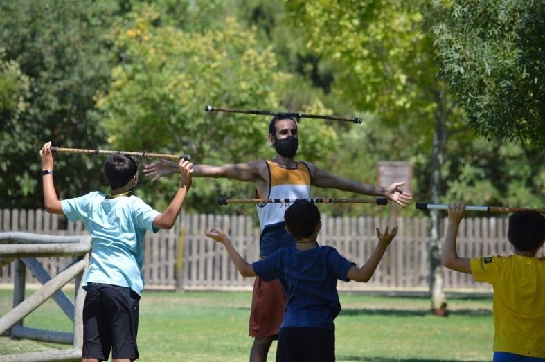 Durante todo este mes de agosto, y al igual que ya se hiciera en julio, un buen grupo de jóvenes se reúne en el parque Laguna del Moral para participar y disfrutar del Taller de Circo que impulsa la delegación de Juventud.