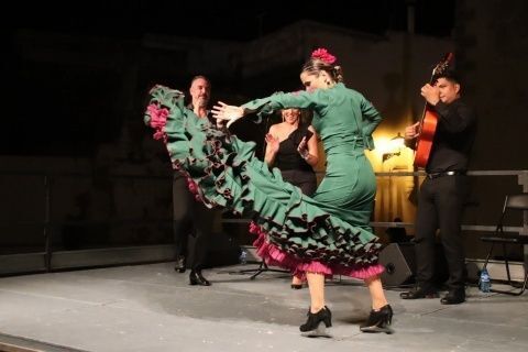 Así, la bailaora nacida en Sevilla y criada en Rota donde comenzó a bailar formando parte del cuadro flamenco "Viejo Agujeta", dio buena muestra de su arte y profesionalidad, avalada por una amplia trayectoria de actuaciones en tablaos y escenarios de toda España y otros países con las que ha cosechando grandes éxitos. La actuación se desarrolló al aire libre contando con todas las medidas establecidas en el protoloco Covid.