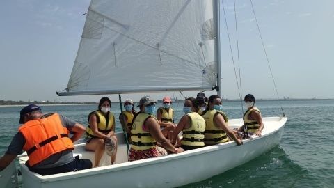 En esta ocasión, realizaron una visita a la escuela municipal de vela donde además de conocer las instalaciones, actividad y cursos que se desarrollan en este equipamiento deportivo y turístico, también han tenido la oportunidad de navegar por las aguas de nuestro litoral de la mano de monitores de la citada escuela.