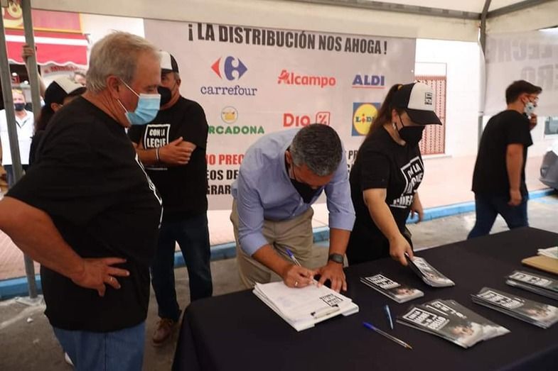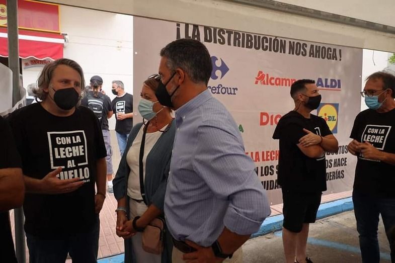 El PSOE de Rota también ha estado esta mañana apoyando al sector lechero que se ha manifestado este mediodía a las afueras de Mercadona para denunciar su situación económica debido a los altos costes de producción y la falta de beneficios en un sector muy castigado por los bajos precios de la industria.