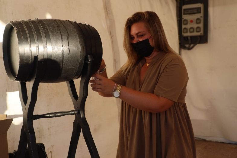 Laura López, de la empresa bodeguera que tanto ha apostado por este vino de Tintilla de Rota para que no se pierda, agradeció al público la asistencia a una cita tan especial para su familia, destacando el trabajo de quienes se afanan por que este caldo no se pierda y tenga cada vez mayor difusión. Con las restricciones por el Covid-19, en vez de permitir que todo el que quisiera subiera al lagar a pisar uva como en ediciones anteriores, esta vez se eligió que fueran los agricultores y posteriormente, se dio la oportunidad a algunos niños que querían vivir esta experiencia.