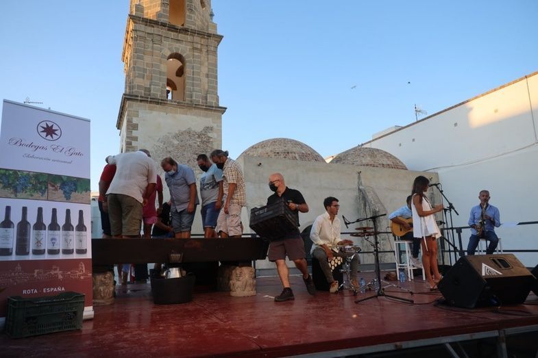 Con varios kilos de uva tintilla pisada en el lagar colocado en la plaza de la Merced concluía esta jornada dedicada al vino más internacional de Rota.