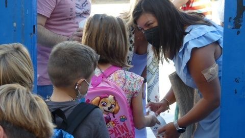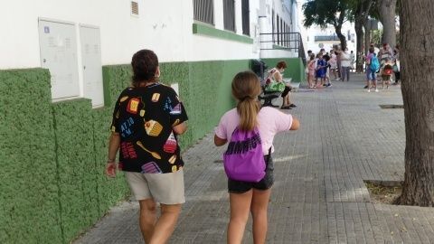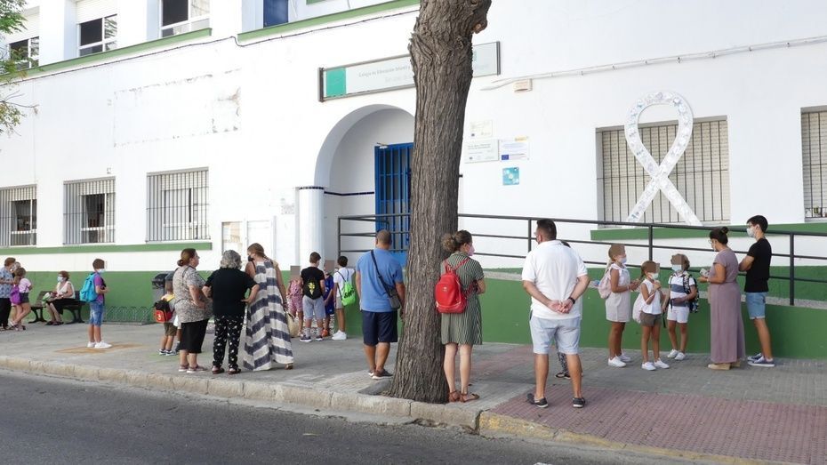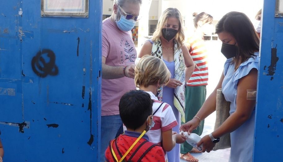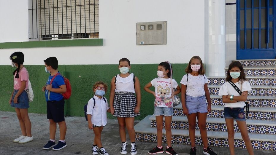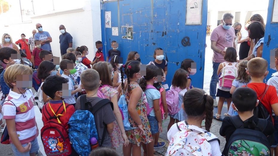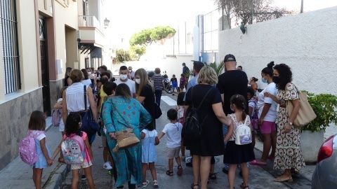 Los niños, siendo niños, son muchas veces más aplicados que los adultos, pero en este primer día de cole, ha habido que recordar algunas normas báiscas del plan Covid-19. Hay que recordar que se mantienen grupos burbujas, clases ventiladas, mascarilla obligatoria para los mayores de 6 años, zonas de patio divididas, marcas en el suelo para que cada clase sepa dónde formar la fila, y por supuesto, nadie ajeno al centro en el interior de los edificios.