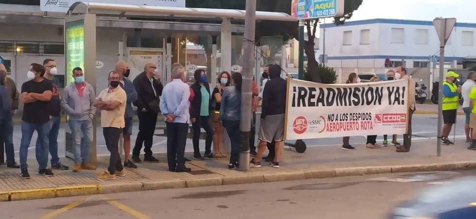 El alcalde de Rota y oposición se han unido hoy a la concentración de los trabajadores del aeropuerto de la Base