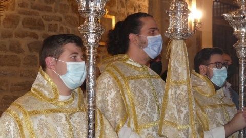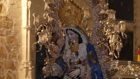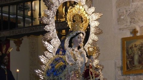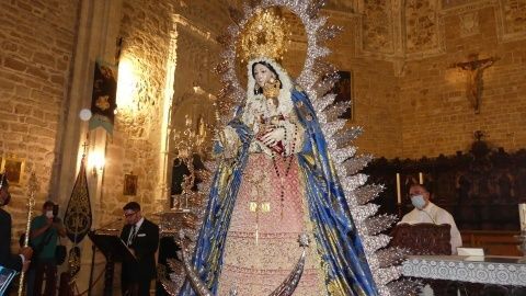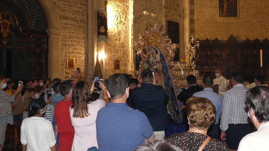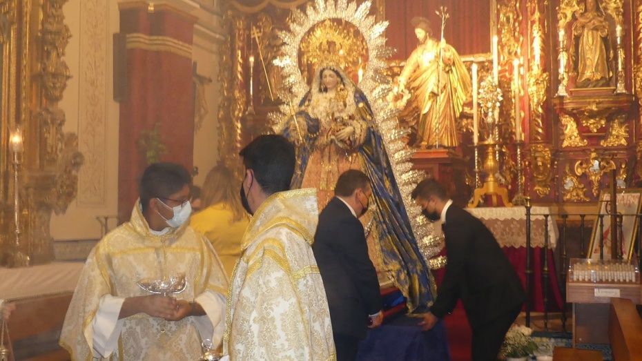 La virgen ha ocupado el lugar central de la parroquia aunque esta noche, en la intimidad, subirá a su paso de plata y desde allí, mañana domingo, 26 de septiembre, presidirá el XXIV Pregón del Rosario para el 7 de octubre salir en procesión el día de su festividad. Con su salida procesional, la virgen el Rosario marcará el inicio de la vuelta a cierta normalidad en esta crisis sanitaria ya que fue la última procesión que se pudo ver antes de la llegada del coronavirus y la primera que retomará el calendario de salidas procesionales.