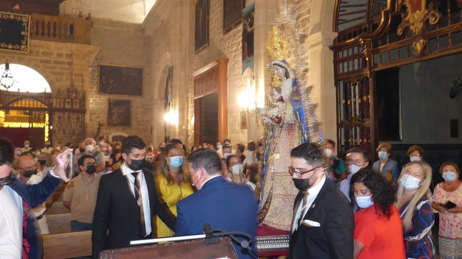 [Img #152317]Aunque ha sido un traslado diferente al de otros años, Nuestra Señora del Rosario Coronada ya preside el altar mayor de la iglesia de Nuestra Señora de la O. No está precisamente en él, porque debido a los desprendimientos de los últimos meses, esta parte de la iglesia ha quedado acotada para seguridad de los fieles, pero lo hace en la parte principal de la iglesia.