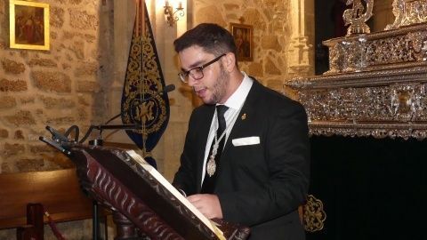 El hermano mayor de la Hermandad del Rosario, Juan Antonio Díaz Romero, junto al pregonero del Rosario, Luis Alfonso Espinar, han estado también en este traslado que marca el inicio de los cultos.
