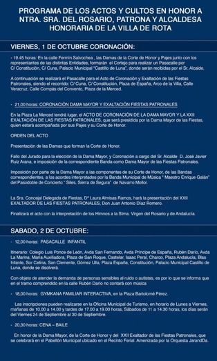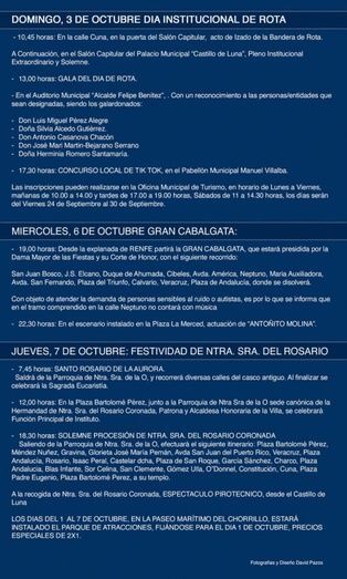 Se trata de una publicación que, además, informa sobre la programación prevista para los días del 1 al 7 de octubre, con el fin de que los ciudadanos puedan tener información exacta de horarios y fechas así como de los itinerarios del pasacalles infantil del sábado día 2 de octubre, de la gran cabalgata del día 6 o de la procesión el día 7.