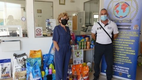La Policía Local entrega a la protectora "Siempre contigo" una donación de artículos y comida para animales abandonados