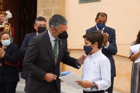 Un momento solemne que vino precedido por la entrega de premios del concurso de redacción sobre Rota que este año ganaba Juan Ignacio Encinas Alcedo, de 5º de Primaria del colegio Pozo Nuevo, y Alba Mellado Sánchez, de 1º de Secundaria también del colegio Pozo Nuevo. Ambos tuvieron la oportunidad de recibir de manos del alcalde su correspondiente premio por haber sido las dos mejores redacciones de cada categoría de entre más del centenar que se han presentado.