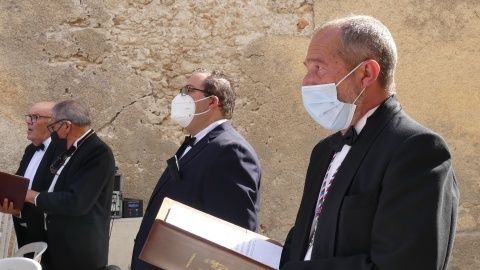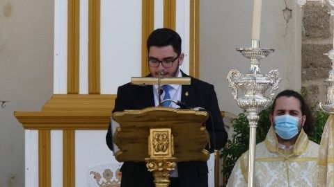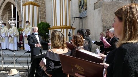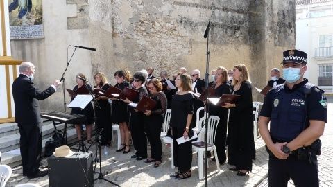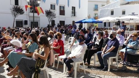 [Img #153402]La misa ha comenzado a las doce del mediodía con el repique de campanas de la iglesia de fondo y la entrada del cuerpo de acólitos y estandarte por el pasillo creado entre las sillas colocadas para el público. El Orfeón "Virgen de la Escalera" ha puesto las notas musicales a la eucaristía que ha oficiado el cura párroco, D. José Arjona Gil, con la que ha comenzado a celebrarse el día de la patrona de Rota en la villa, tras el rosario de la aurora rezado a primera hora de este jueves. Algunas calles del centro se han engalanado con banderines para que a su paso, esta tarde Nuestra Señora del Rosario luzca con esplendor.
