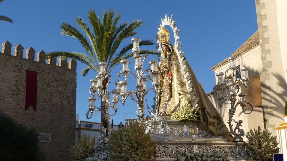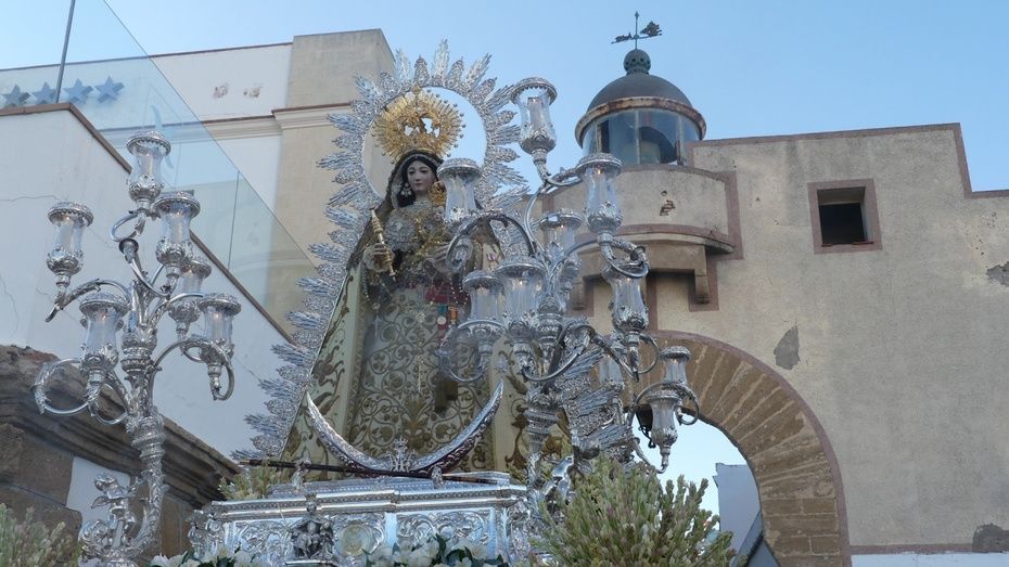 Aunque la primera parte de la jornada festiva del 7 de octubre estuvo bastante tranquila, con poco ambiente por las calles de la localidad, la estampa cambió radicalmente por la tarde una vez que la patrona de Rota puso un pie en la calle.