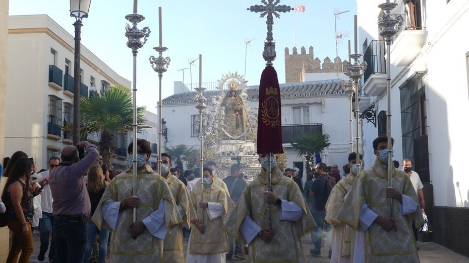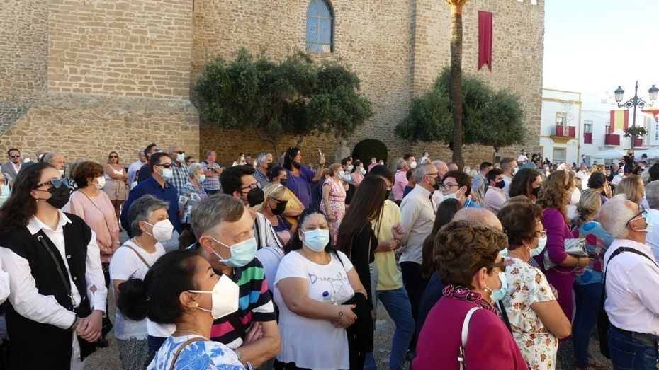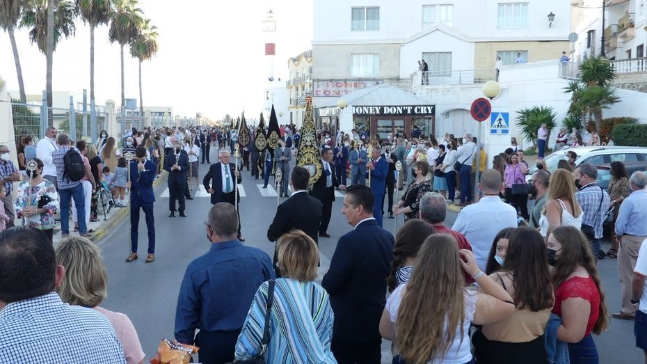 Cientos de ciudadanos llenaron las calles desde el principio y pudieron disfrutar del cortejo por zonas por las que la patrona de la villa nunca antes había pasado. Tras su salida de la parroquia de Nuestra Señora de la O a las 18.30 horas, con bastante público que esperaba en la plaza Bartolomé Pérez, la comitiva empezaba a avanzar y pasaba por primera vez por la avenida San Juan de Puerto Rico dejando una estampa nunca vista a excepción del año de su coronación canónica, en 2003, cuando bajó por esta misma avenida para aquel momento histórico. Este año se le ha podido ver pasar por el arco del faro antiguo y por una avenida que ha estado en todo momento llena de público. Y es que los roteños tenían ganas de procesión y se ha notado a juzgar por el ambiente que se ha vivido a lo largo de toda la tarde noche.