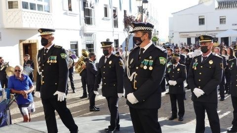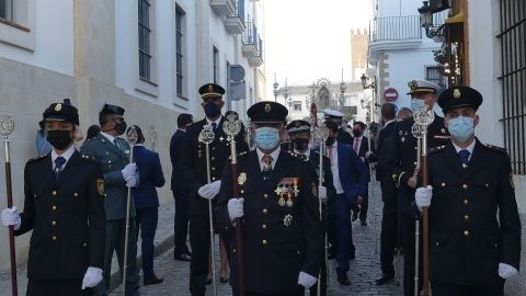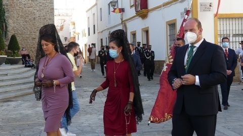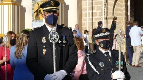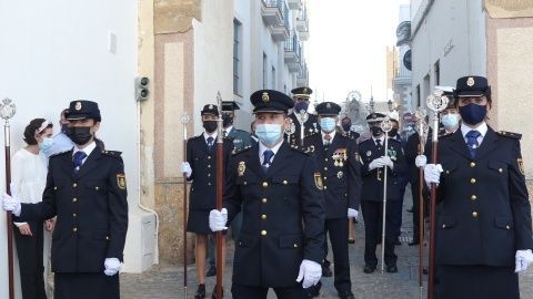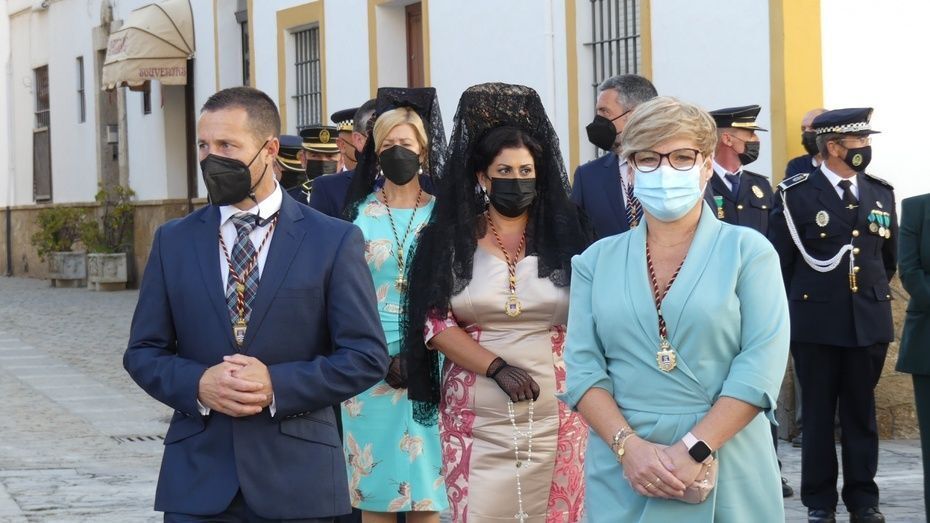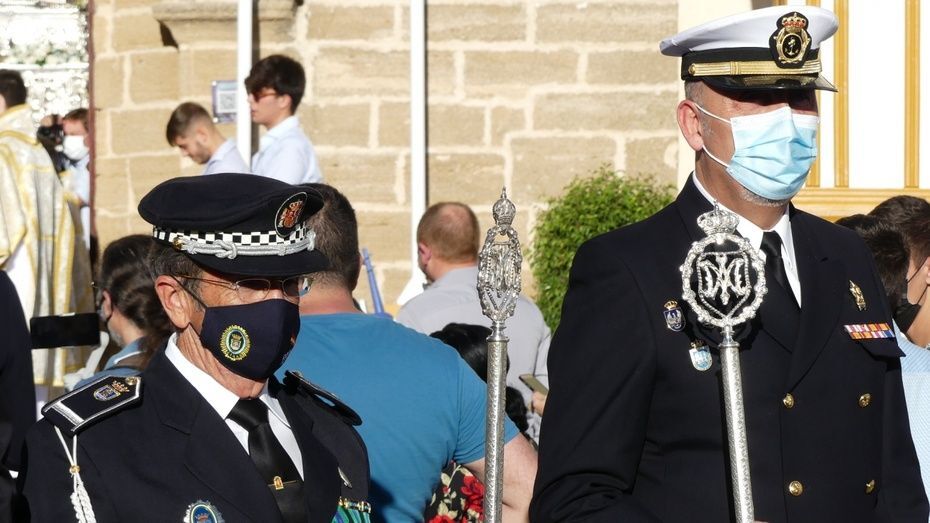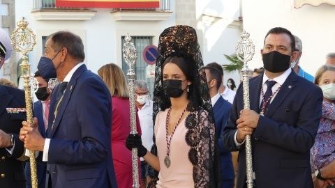 Rota y el Rosario están unidas desde hace cinco siglos y esta era una de las dos citas que desde antaño hacía que los mayetos y la gente del campo saliera al núcleo urbano de Rota para acompañar a la patrona. Hoy, con cientos de años de diferencia, también los roteños han salido a la calle, lo han hecho con ganas y disfrutando de un cortejo largo compuesto por representantes de las asociaciones parroquiales y archicofradías de María Auxiliadora, las 15 damas del Rosario vestidas de mantilla, representantes de todas las hermandades de penitencia y gloria de la villa luciendo estandarte y ordenadas por orden de antigüedad y hermanos de la Hermandad de Nuestra Señora del Rosario. Han formado parte de esta comitiva igualmente, el almirante de la Base, que es hermano mayor honorario de la Hermandad del Rosario desde 1864, representantes de la Policía Local, Guardia Civil, Protección Civil y por primera vez también desde hace años, miembros de la Policía Nacional de Rota. Tras la virgen, han procesionado miembros de la Corporación municipal bajo maza con el alcalde de Rota, Javier Ruiz, portando el bastón de mando.