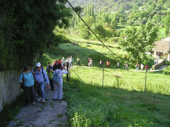 La vegetación exhuberante nos invitaba a contemplar un paisaje primaveral. El sendero se presentaba salpicado del colorido de las diminutas flores y de las peonias silvestres que nos deleitaban con su belleza salvaje, mientras, nosotros avanzábamos por un camino empedrado para luego bajar hasta la zona conocida como “Los Llanos del Campo”.