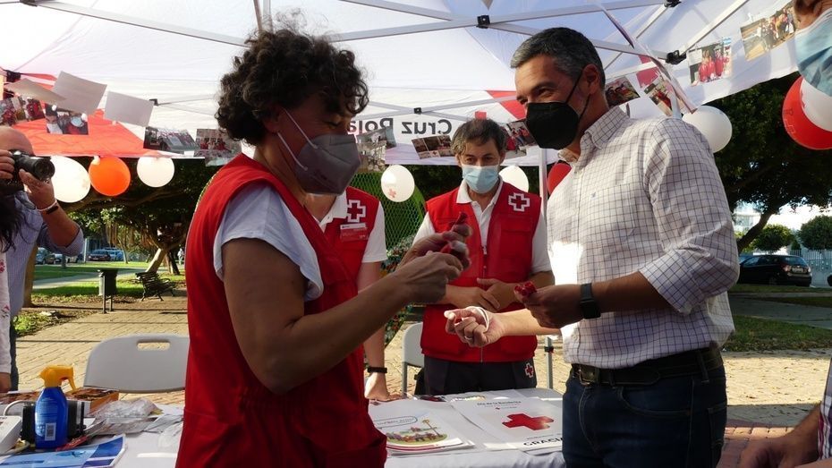 De hecho, a lo largo de la tarde, el alcalde de Rota, Javier Ruiz, acompañado por la delegada de Servicios Sociales, Luisa Fernández, y el delegado municipal Jesús López Verano, se han pasado por el stand para reconocer el trabajo que desde hace décadas realiza Cruz Roja en Rota. Han recibido la pulsera conmemorativa de este día y han charlado con los voluntarios reconociendo el trabajo y la labor tan necesaria que realizan de forma altruista.