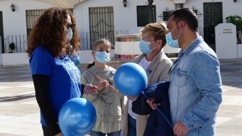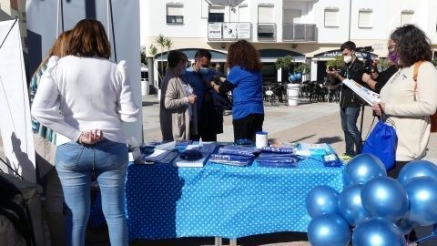 Globos azules y lazos del mismo color se han impuesto hoy a muchos ciudadanos. Han faltado los habituales controles de glucemia, que midel el nivel de azúcar en sangre a los ciudadanos, que finalmente no se han realizado por la pandemia.