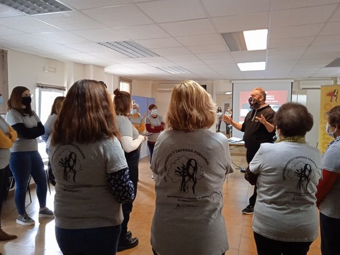 [Img #155990]Durante la jornada se analizó la vulnerabilidad que sufren las mujeres que viven en zonas rurales ante la violencia machista, su origen y sus principales formas haciendo especial hincapié en la violencia psicológica. Además, se reflexionó sobre los mitos, las falsas creencias y los micromachismos cotidianos que mantienen el control del hombre sobre la mujer y se aportaron recursos y estrategias para prevenir este tipo de violencia resaltando la necesidad del autoconocimiento, la autoestima, la regulación emocional y la autoafirmación, prestando una especial atención a la defensa de los derechos personales. Posteriormente, y para completar el taller, las participantes pudieron asistir a una sesión práctica en la que Antonio Pedro Hirch, monitor de defensa personal combativa y gerente de Anpehi con amplia experiencia en la impartición de técnicas de defensa personal femenina,  enseñó  algunas maneras prácticas de evitar un ataque machista.