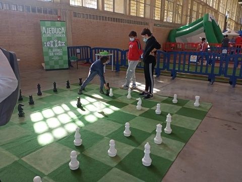 Entre los muchos clubes, asociaciones y ayuntamientos que estuvieron mostrando su oferta deportiva y de salud, estuvo AJEDUCA realizando diferentes eventos de forma dinámica e interactiva enfocado al ajedrez. Desde partidas simultáneas, torneos educativos y competitivos, diseño de piezas, ajedreces vivientes, visualización de diferentes vídeos y la presentación del cuento "Ajedulandia" formaron parte de la presentación de esta entidad que sigue apostando por incluir el ajedrez dentro del currículo escolar debido a los altos beneficios que suelen aportar a los alumnos.