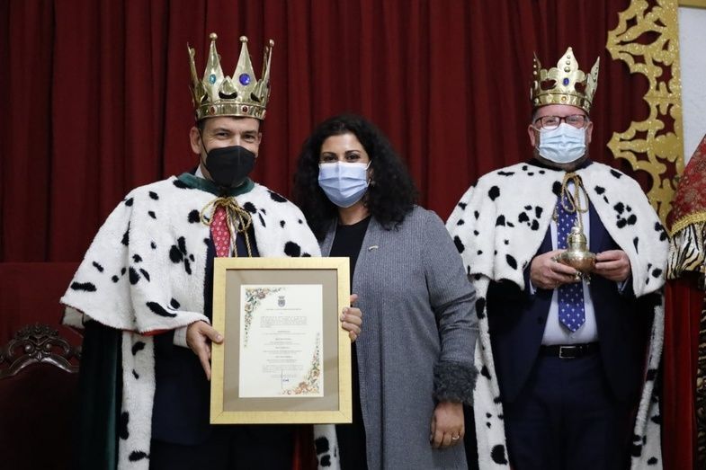 [Img #156680]Melchor, Gaspar. Baltasar, el Cartero Real y la Estrella de la Ilusión recibieron de manos del alcalde de Rota, Javier Ruiz, y de la delegada de Fiestas, sus atributos, los nombramientos oficiales para representar estos papeles y los alfileres con el escudo del Ayuntamiento de Rota o con la Estrella de Belén.