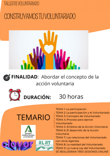 La otra propuesta de formación se desarrollará bajo el título "Construyamos tu voluntariado" que tendrá como objetivo, abordar el concepto de la acción voluntaria. La duración de este taller será igualmente de 30 horas y entre los temas a tratar, estará la participación y el voluntariado; el concepto de voluntariado; el proceso para ejercer el voluntariado; las relaciones del voluntariado con los agentes o la nueva Ley del Voluntariado entre otras.