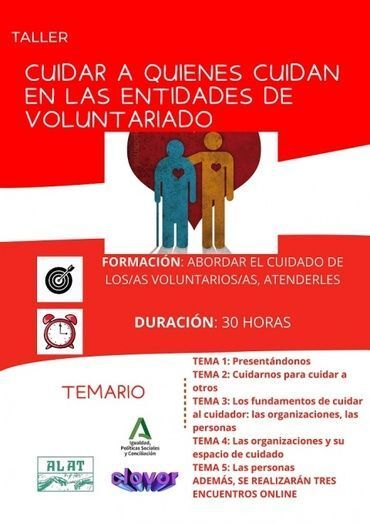 El primero de los talleres lleva por título "Cuidar a quienes cuidan en las entidades de voluntariado", y tendrá una duración de 30 horas. El contenido versará sobre cómo cuidarnos para cuidar a otros, los fundamentos de cuidar al cuidador; las organizaciones y espacios de cuidado; y las personas, como eje central. Y es que muchos son los cuidadores que se desviven por el cuidado de otros olvidando algo tan importante como cuidarse a sí mismos para poder atender mejor a esa otra persona. Este curso, viene a enseñar cómo hacerlo.