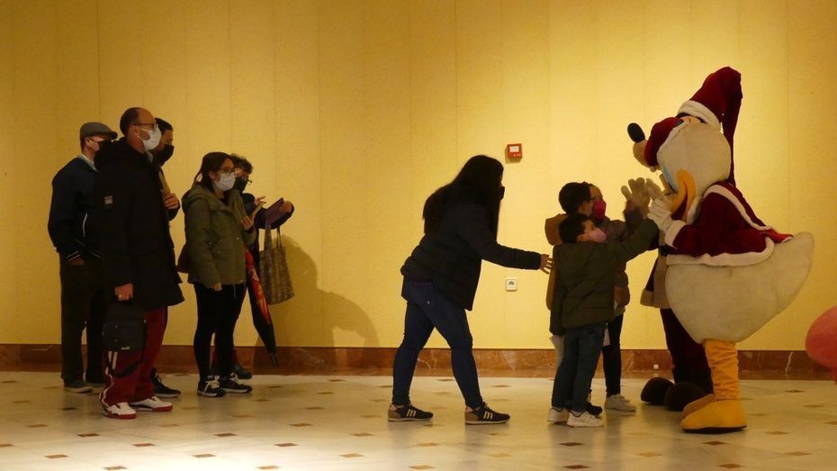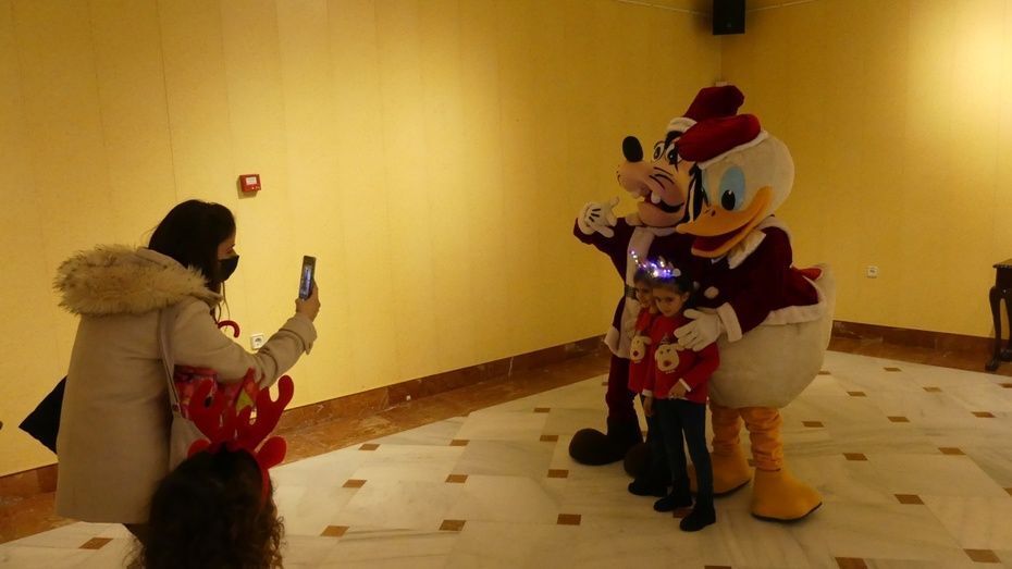 Muchos han sido los menores que han entregado su carta de regalos a Santa, aunque no ha habido colas masivas y de hecho, la tarde ha estado en términos generales, tranquila y controlada. El acceso al salón multiusos del Palacio municipal Castillo de Luna, donde esta Papá Noel, se ha hecho tomando la temperatura a todos los ciudadanos que han querido acceder. Ya en el interior, estaban Mickey Mouse y sus amigos para saludarlos, mientras que una charanga ponía la nota musical.