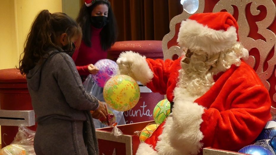 Entretanto, Papá Noel iba saludando desde su asiento a todos los niños que así lo han querido. Algunos han aprovechado para echar su carta en los buzones allí dispuestos, y que también han estado desde el pasado día 10 en otros puntos de la localidad, y otros directamente, se han limitado a saludar a Santa Claus y recibir el balón y el paquete de golosinas.