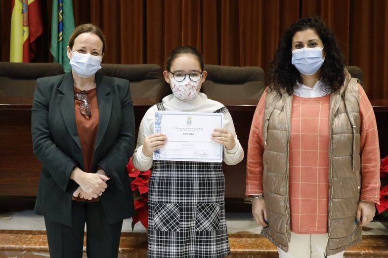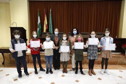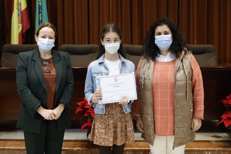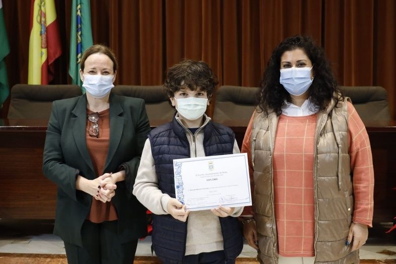 Los alumnos de Rota que han resultado finalistas, así como la ganadora del concurso municipal,  han recibido los diplomas correspondientes por su participación de manos de la primera teniente de alcalde delegada de Educación, Encarnación Niño, y la delegada de Fiestas, Laura Almisas Ramos, así como una felicitación y enhorabuena por su trabajos de redacción.