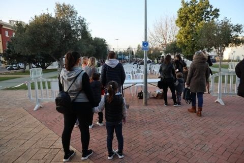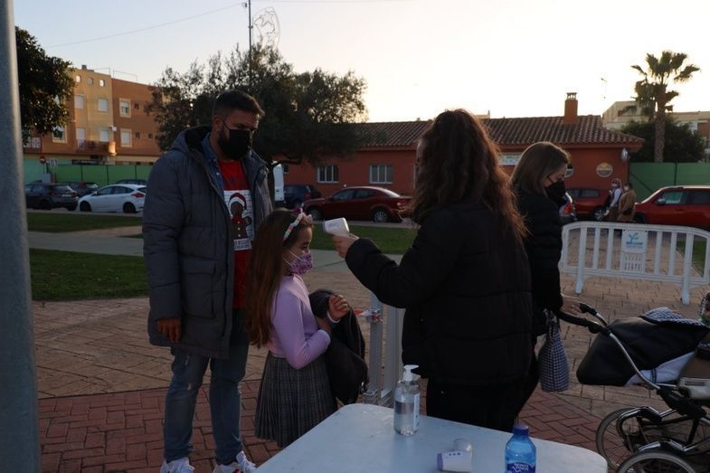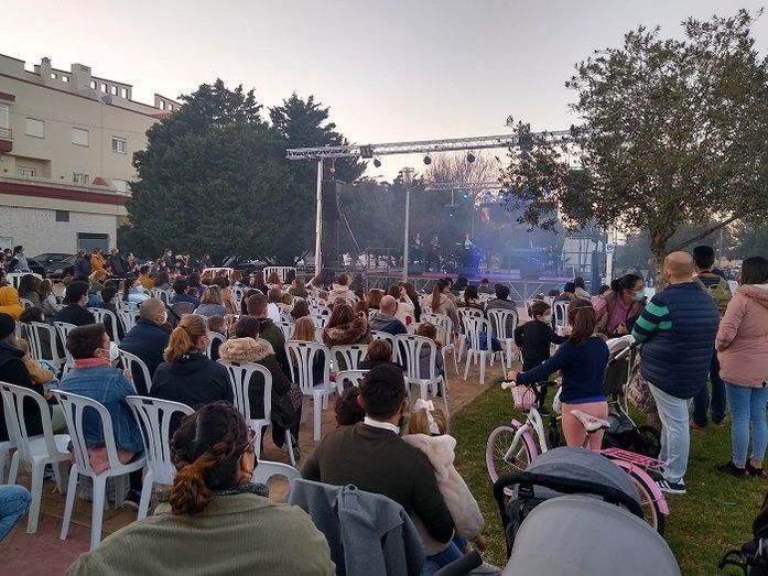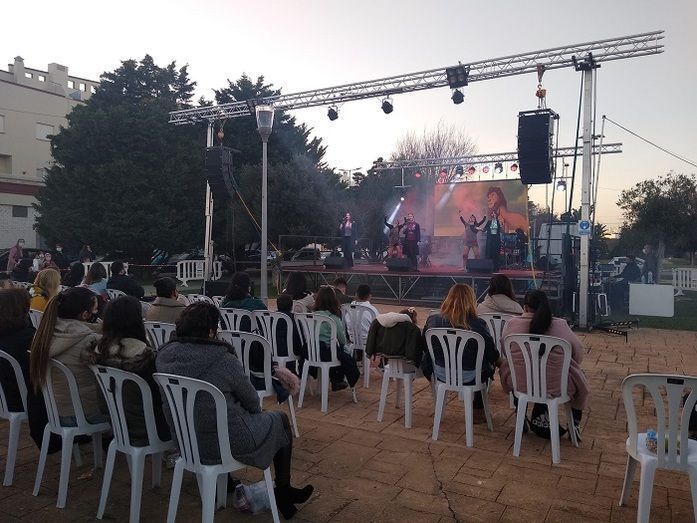 La delegación de Fiestas acotó el Bulevar Bahía de Cádiz con 500 sillas para que el público estuviera cómodo, y se habilitó un circuito de entrada y salida con toma de temperatura para cumplir las medidas sanitarias.