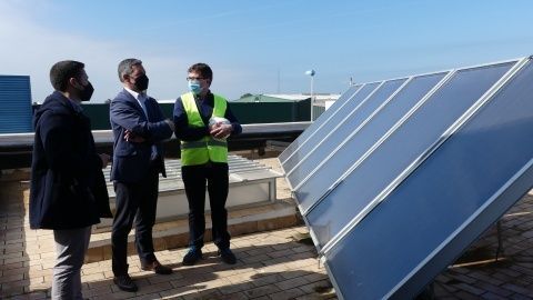 José Manuel Márques, de la empresa GISA, explicaba en la visita de hoy que por un lado, se procedió en su día a colocar paneles fotovoltaicos con potencial nominal del generador 47.04 kw, cuya energía eléctrica será destinada al consumo en la piscina; y por otro lado, se ha realizado una mejora integral en la instalación térmica del edificio, que aumentará de forma clara la eficiencia energética de las instalaciones de climatización y deshumectación del recinto ya que las máquinas deshumectadoras que se instalaron en su día no cumplían con los estándares de calidad que se requieren. Ahora se han instalado dos deshumectadoras mucho más eficientes que ayudarán a mejorar la calidad del aire en el interior de la piscina y se recupera la energía porque son más eficientes. Con esta actuación se consigue un ahorro de energía importante aunque, como indicaba el alcalde, no será hasta que la piscina esté funcionando en su totalidad cuando se pueda comparar el cambio