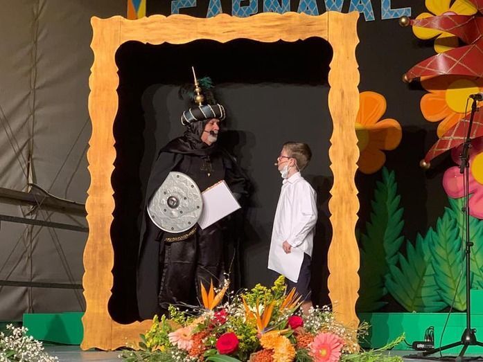 [Img #160890]Tras su intervención, fueron el alcalde de Rota, Javier Ruiz, y la delegada de Fiestas, Laura Almisas, los que le entregaron un recuerdo de este día, agradeciéndole su implicación en la fiesta. El alcalde dio las gracias a los asistentes por su presencia, y se mostró contento por ver una plaza de España llena tras tantos meses de parón por la pandemia. El regidor animó a disfrutar lo que queda de Carnaval y hacer que esta fiesta siga teniendo tirón en las calles.