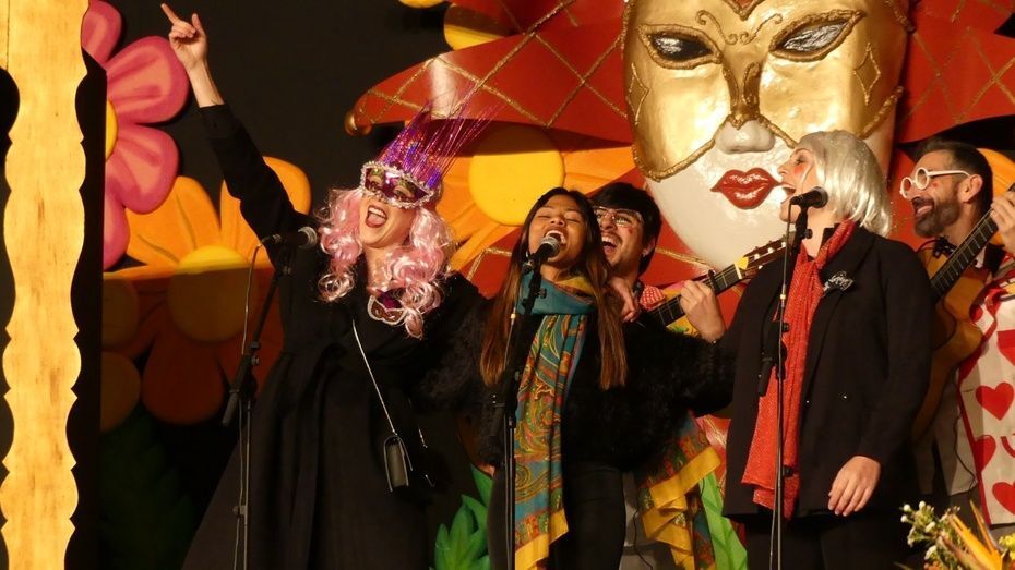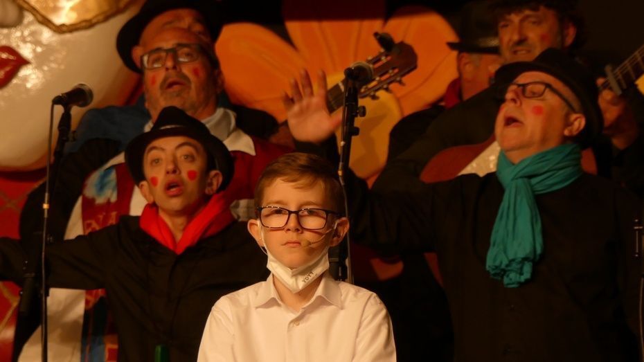 Una vez terminada esta parte del primer acto oficial de la programación, subieron al escenario los miembros de la Antología de "Los niños sin nombre", que animaron con su repertorio la primera noche carnavalesca de Rota.