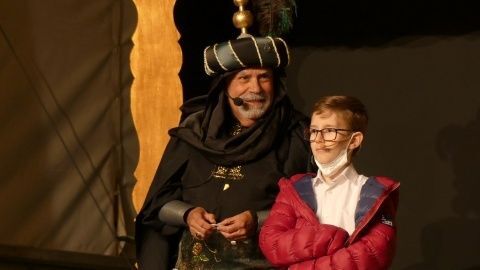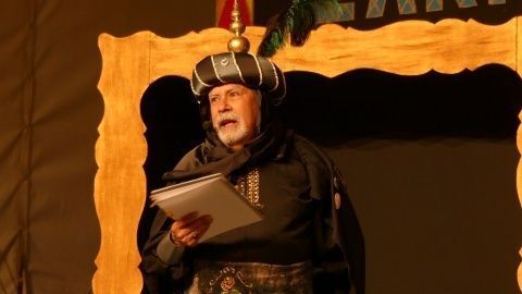 El suyo ha sido un pregón inusualmente corto, de apenas 25 minutos, en el que con el tipo de Zafadola, un noble andalusí, aprovechó para hacer historia de Rota desde la antigua Rábita Ruta, pasando por  Guzmán el Bueno,  Ponce de León o los Duques de Arco hasta llegar al castillo fortificado, santo y seña de la villa. Asesinado en 1146 en Albacete, volvía en 2022 a casa por Carnaval. No lo hizo solo, en el escenario se acompañó de un Leo más pequeño, su alter ego,  que le ayudó con sus comentarios jocosos en un pregón que se centró básicamente, en el papel de las peñas carnavalescas de Rota, "alma y corazón" de los carnavales.
