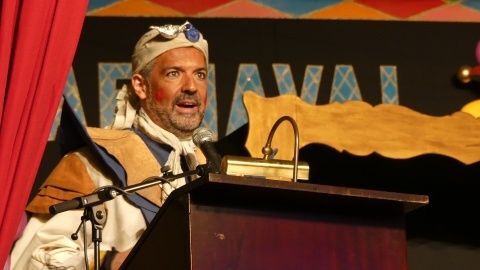 Leopoldo Almisas pregona el Carnaval de Rota con guiño a las peñas carnavalescas roteñas