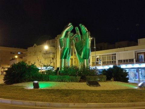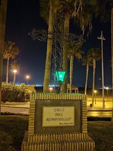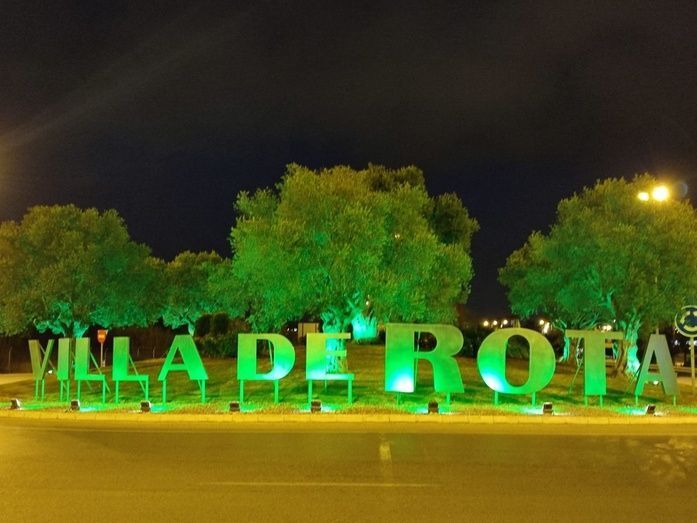 Es un gesto simbólico del Ayuntamiento de Rota, a través de la delegación de Servicios Generales, que se ha encargado de colocar las luces verdes para envolver estos puntos señalados de un color tan identificativo con Andalucía y su enseña.