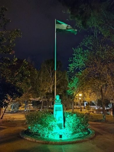Esta vez, el color verde de la bandera de Andalucía está presente en varios espacios por los que hoy al pasar, ya se pueden ver iluminados como el Arco de la Villa y el Pozo de la Villa, la rotonda de "Las Manos", los faroles de la Cruz de la Casa Rincón en la calle Calvario, así como el farol de la Cruz del Rompidillo, situado en la calle Veracruz.
