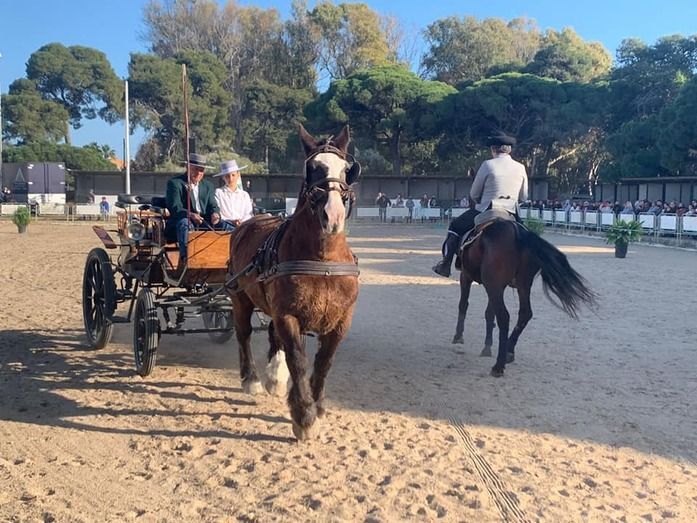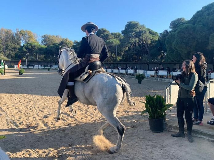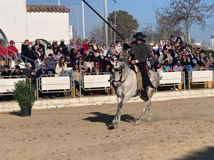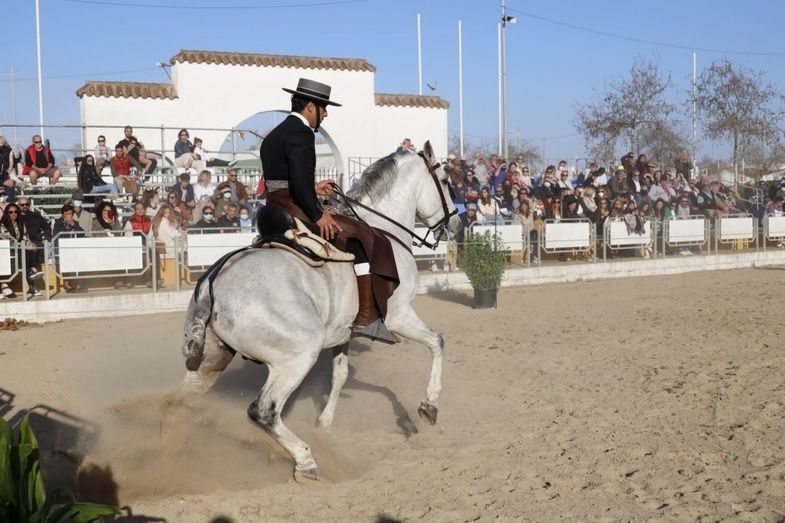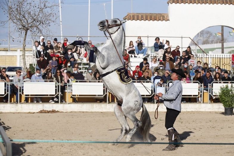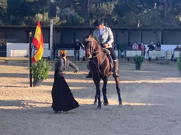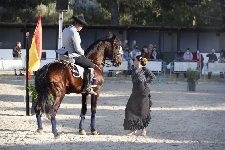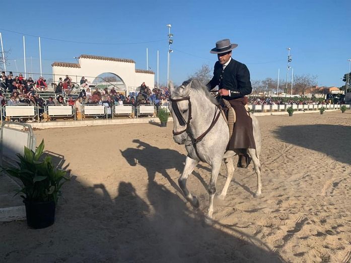 Las gradas de la escuela municipal de hípica "Francisco de Paula Ortega García" se llenaron de roteños y visitantes que no quisieron perder la oportunidad de ver en directo la destreza de varios jinetes con los caballos en la pista. Sin duda, el caballo es símbolo de parte de la cultura andaluza y en este día de los andaluces no podía faltar su presencia.   También ha estado presente el flamenco porque como parte del espectáculo, el jinete Manuel Piruat guía al caballo en un baile al unísono con una bailaora.
