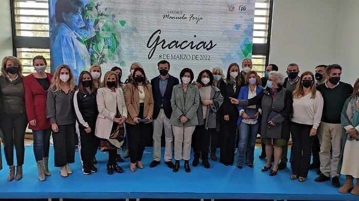 Agradeció además a la amplia representación del PP de la provincia presente en esta entrega de premios escenificando así, decía, el compromiso de este partido con la igualdad y la lucha contra la violencia de género, dos campos que son también parte fundamental de la agenda del presidente de la Junta de Andalucía, Juanma Moreno, manifestaba dedicando palabras de agradecimiento por sus trayectorias a todas las homenajeadas.