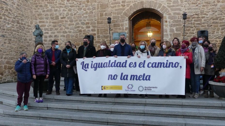 El alcalde de Rota, Javier Ruiz, la delegada de Igualdad, Luisa Fernández, miembros del gobierno municipal y de la Corporación y representantes de algunas asociaciones así como ciudadanos en general, han participado de un acto sencillo que se ha celebrado tras la "Ruta por la igualdad" que ha puesto el foco en la historia de mujeres roteñas que destacaron y abrieron camino en el mundo laboral, empresarial, cultural o político.