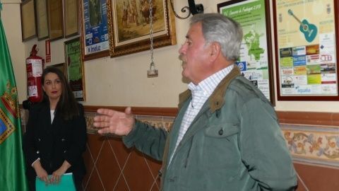 La sede de la Peña Rociera fue el escenario en el que se presentó el cartel anunciador, una fotografía del roteño José Ignacio Ruiz-Herrera, que descubrieron el presidente de la entidad, Antonio Bejarano, junto al delegado municipal Jesús López Verano, en nombre del Ayuntamiento de Rota.