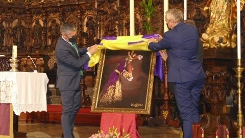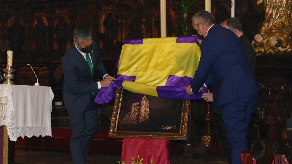 Con un sonoro aplauso, concluía esta VIII Exaltación de la Madrugá donde los acordes musicales corrieron a cargo una vez más de la banda de Nuestro Padre Jesús Nazareno que fue la que acompañó el descubrimiento del cartel anunciador de la Semana Santa 2022 que edita esta hermandad. Dado que no se ha podido convocar este año el concurso de fotografías habitual, cuya foto ganadora se elige como cartel, ha sido una obra de Óscar Torres y Juan Manuel Jurado, con la imagen de Jesús Nazareno cargando su cruz, la que anuncia una llegada tan esperada. Una imagen impresionante del Señor de Rota con su túnica morada bordada y un fondo de naturaleza. Los autores agradecían la confianza de la junta de gobierno y aseguraban que con solo mirar la imagen del Nazareno, era fácil descubrir lo que ambos han querido expresar.