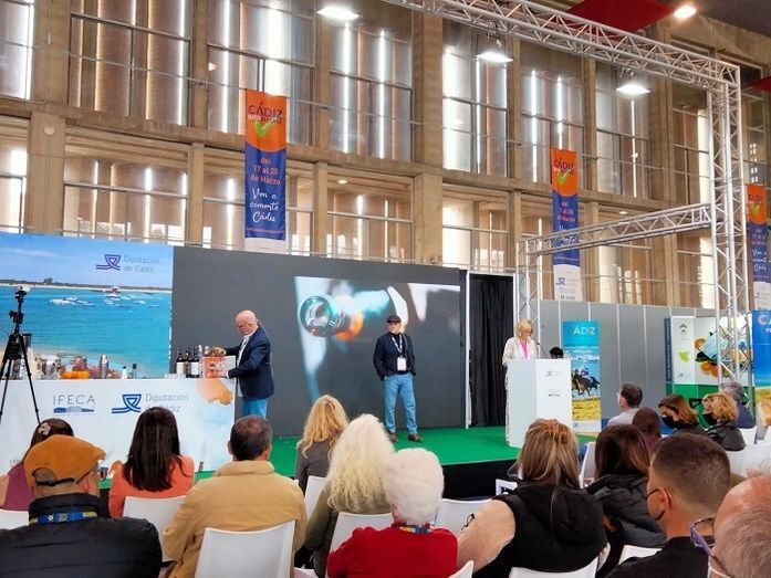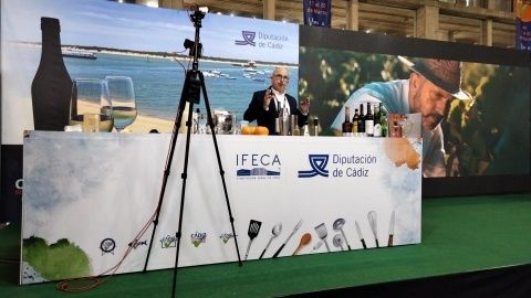 De lo tradicional a lo más singular, así se presenta Rota que desde ayer está participando en la primera feria agroalimentaria de la provincia de Cádiz, "Cádiz Bienmesabe". En la tarde del jueves, primera jornada de esta cita gastronómica, la localidad se centró en la Tintilla de Rota y ofreció a los presentes una master class de coctelería impartida por Narciso Fuentes Santamaría, más conocido como “Chicho” de la Coctelería El Dardo, uno de los barmans más reconocidos con más de 45 años de experiencia en el sector. Con su habilidad especial, preparó un cóctel en el que explicó los matices y sabores que aportan elementos tan roteños como la Tintilla, una forma de saborear este vino de un modo distinto al habitual. Antes de esta sesión, fue el sumiller y presidente de la Asociación "T de Tintilla", José Antonio Rodríguez "Peque", el que se encargó de impartir una charla de introducción a la Tintilla de Rota para conocer más acerca de este caldo que tuvo en siglos pasados un auge importante como producto exportado, sus matices, su singularidad y su escasez ahora en expansión de nuevo.