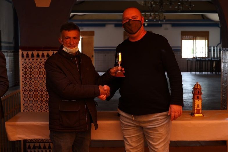 En la jornada de ayer domingo, se llevó a cabo la celebración del acto de entrega de trofeos del XXVIII Concurso de Canto Timbrado que organiza la asociación de Canaricultura "La Costilla" de Rota. Un acto en el que estuvo el alcalde de Rota, Javier Ruiz Arana, junto con el delegado de Deportes, José Antonio Medina, que quisieron acompañar a mediodía a esta entidad y a los premiados que disfrutaron de una jornada de convivencia en la caseta de la UD Roteña.