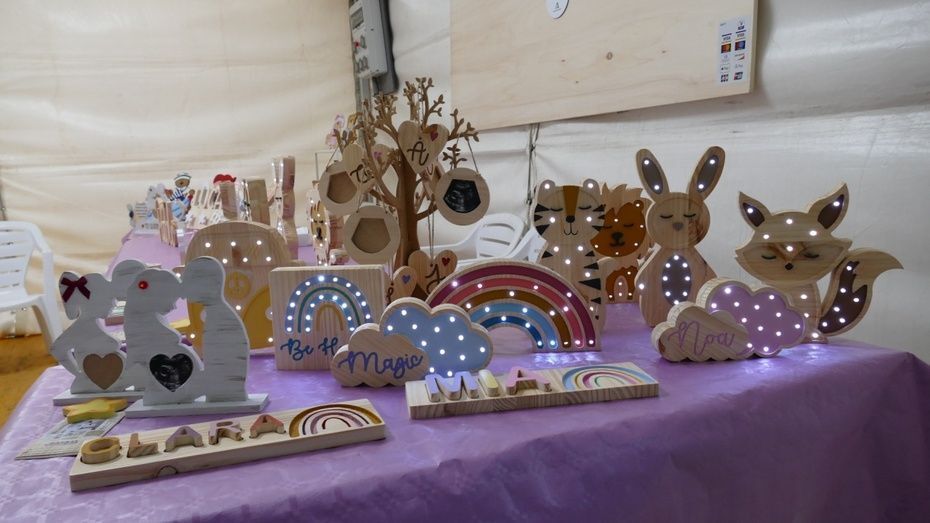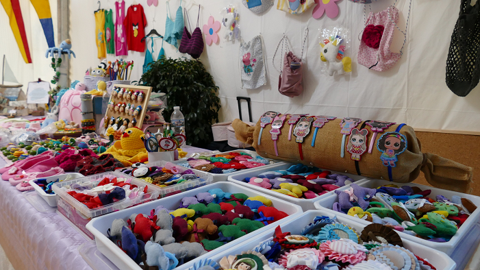 Aunque anoche algunas artesanas ya abrieron su stand, no será hasta hoy cuando abran en su totalidad los 14 expositores en los que se puede encontrar desde complementos hechos a mano, ropa de bebé, artesanía en madera, decoración con material reciclado de la playa, bolsos, neceseres personalizados, muñecos de tela, muñecos reborn, saquitos térmicos, etc.