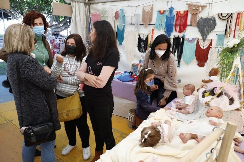 El alcalde y las dos delegadas han visitado cada uno de los stands de estas mujeres que se dedican a realizar de forma artesanal artículos, ropa y productos que llevan el sello de la calidad y el trabajo de lo artesanal. Por eso, los representantes públicos han querido valorar la labor de estas 14 roteñas que desde hoy y hasta el domingo, 3 de abril, mantendrán abiertas las puertas de sus expositores en los que se puede ver ropa de bebé hecha a mano, mantoncillos, encajes, muñecos de tela, artículos de madera, muñecas reborn, bolsos, neceser, colgantes, bolsitas térmicas, decoración infantil, etc.