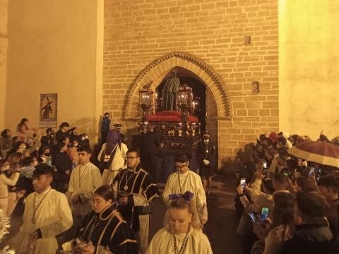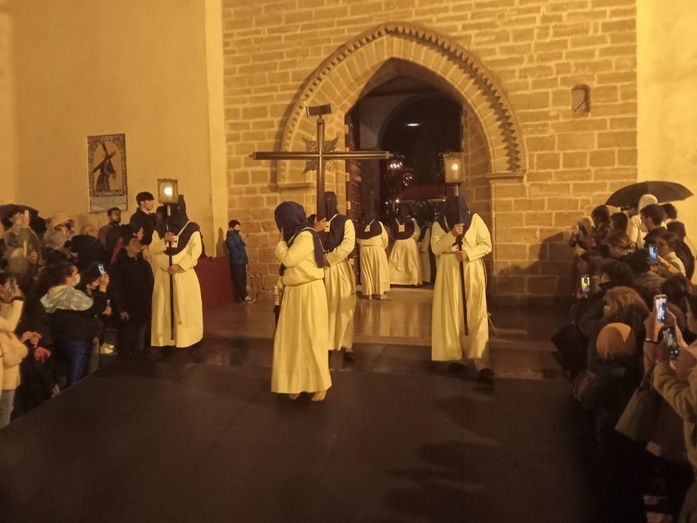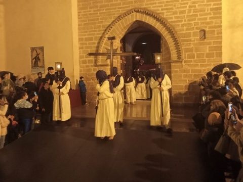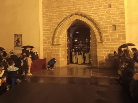 La lluvia ha parado pasadas las once de la noche y la junta de gobierno de la Hermandad de la Veracruz, con los partes meteorológicos en la mano, ha visto que había una tregua suficiente como para que Nuestro Padre Jesús Cautivo saliera de la parroquia de Nuestra Señora de la O hasta la capilla de San Roque.