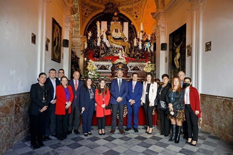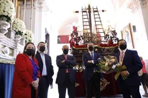 Los representantes municipales han realizado la habitual ofrenda de flores y han deseado a la Hermandad de los Dolores que la salida procesional de esta tarde se desarrolle con total normalidad, y cumpla con los deseos y expectativas de esta Hermandad.