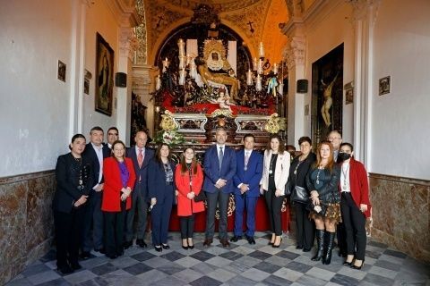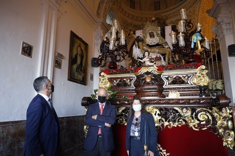 En la mañana de hoy, también el alcalde de Rota, Javier Ruiz, acompañado por los tenientes de alcalde Daniel Manrique y Encarna Niño, ha visitado la capilla de la Caridad desde la que hoy procesionará Nuestra Señora de los Dolores y el Santísimo Cristo de la Caridad a las 19.00 horas.